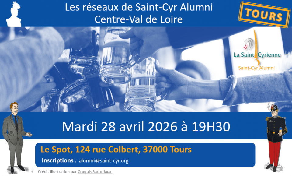 Le prochain pot des saint-cyriens tourangeaux se tiendra le mardi 28 avril dès 19h30 au Spot (37000).
